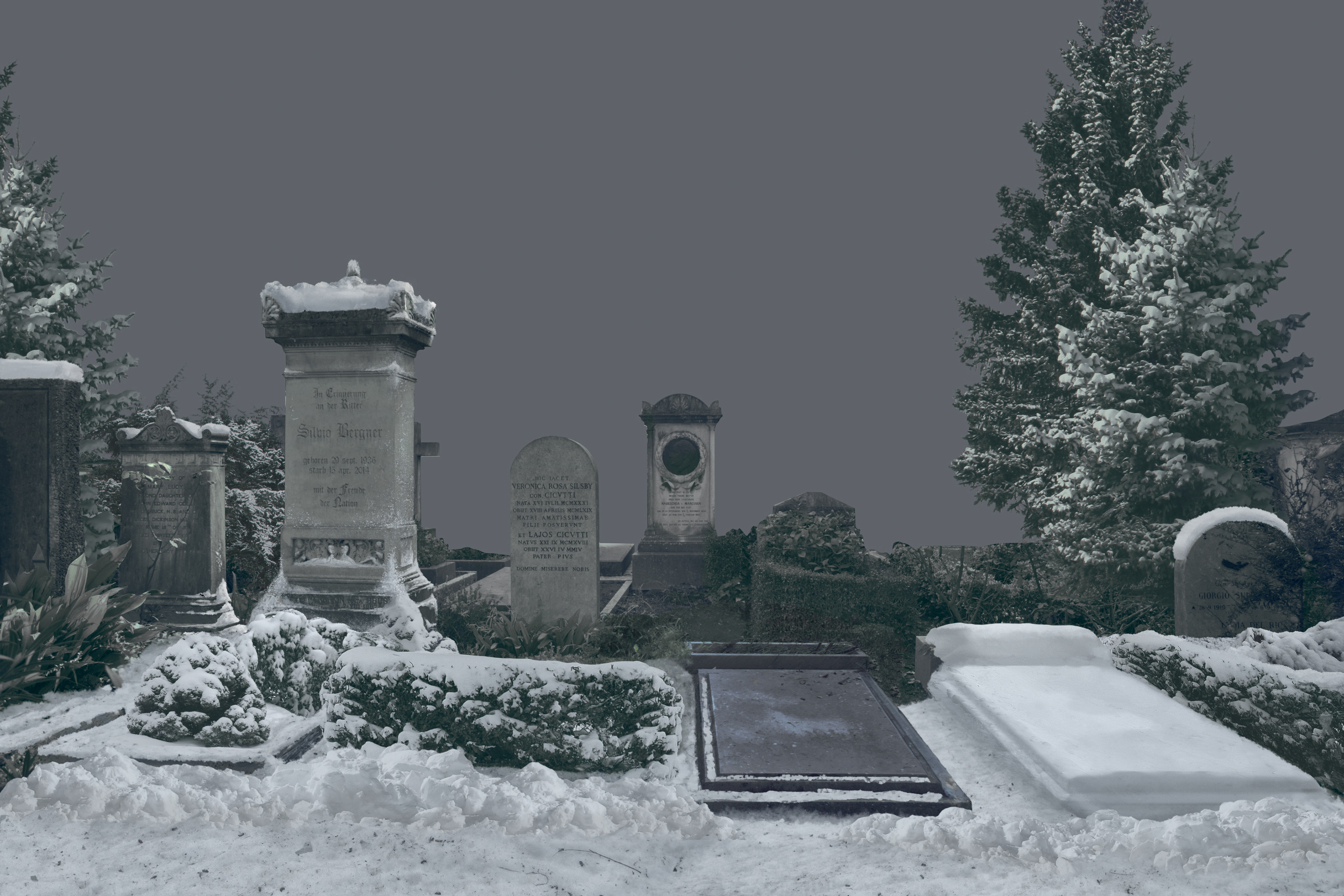 Original picture of cemetery to be covered in snow